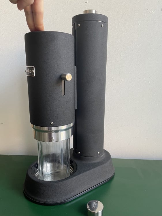 - The Machine: This is the main unit that sits on your counter. It’s essentially a stylish stand designed to hold the CO2 cylinder and the carbonating bottle securely in place.